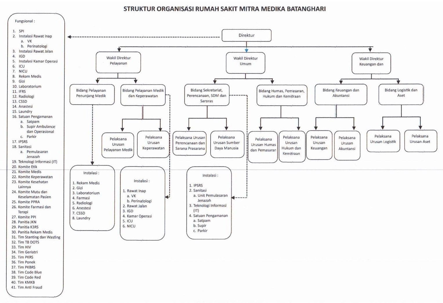 Rumah Sakit Mitra Medika Batanghari memiliki struktur organisasi yang jelas dan terukur untuk menjalankan kegiatan operasionalnya. Tim manajemen kami berdedikasi untuk memberikan pelayanan kesehatan terbaik kepada masyarakat.